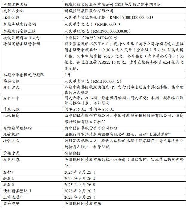 经中国银行间市集来回商协会批准,新城控股集团股份有限公司将在天下银行间债券市集公设置行“新城控股集团股份有限公司2025年度第二期中期单据”(以下简称“本期中期单据”)。
