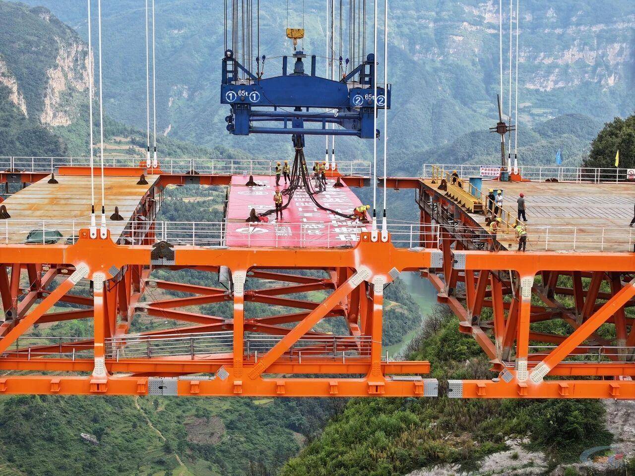 为保护北盘江当然保护区生态,名堂甩掉传统落地支架法,调动聘请永临索夹与吊索聚首的无支架起吊平台,幸免在谷底搭建大型支架,最大畛域减少对原生态的烦嚣,为山区和生态明锐区桥梁开辟提供了绿色施工样板。